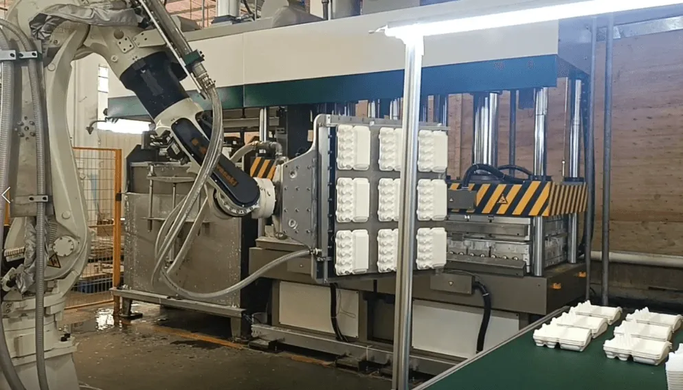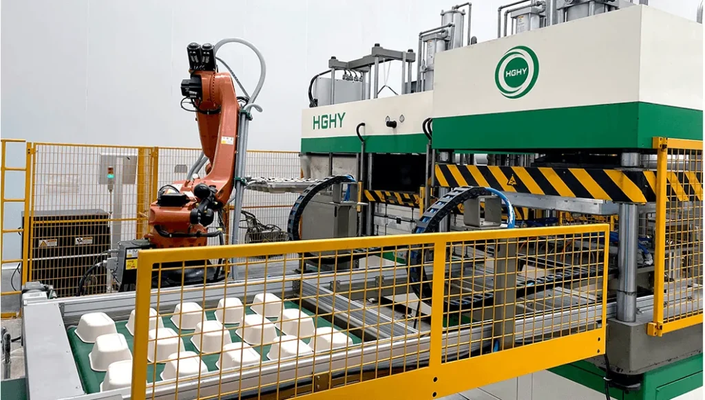Fully automated with a renowned global robot brand, the machine has a well-organized layout for easy mold changes and an open design for easy maintenance. It features a special design for uniform forming, combining hot pressing and forming into a single step.